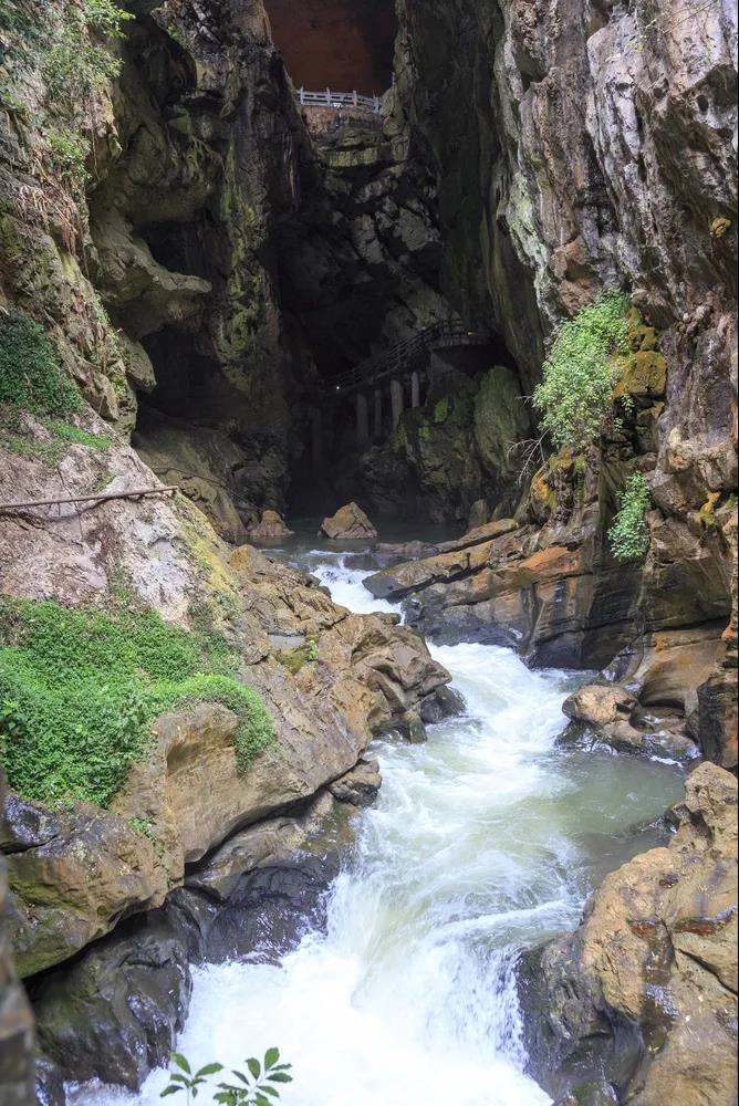 進(jìn)入峽谷叢林,一派亞熱帶景觀,林中樹木高大,藤蔓交織纏繞,在藤網(wǎng)之中,一株株巨大的樹干幾乎全被藤條密密纏繞。