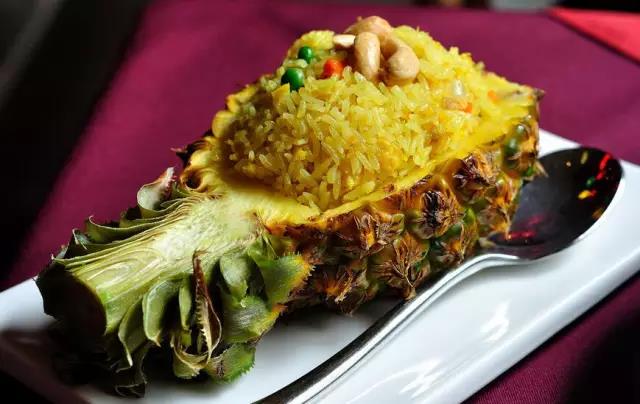 菠蘿還可以當(dāng)飯吃。把帶皮的菠蘿中間挖空了,放入紫米和水,蒸熟了就是甜又香的菠蘿飯了。菠蘿飯取了八寶飯的甜味,卻沒有油膩味,吃起來非常爽口。外地人最喜吃這種獨(dú)具特色的飯了。圖片