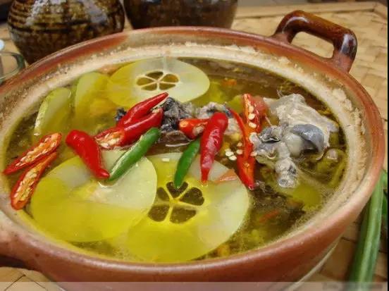 這是云南臨滄的一道特色風(fēng)味佳肴,以云縣、臨滄交界地羊頭巖一帶最有名,這里盛產(chǎn)木瓜。主要原料是臘火腿、白花木瓜、山地子雞。這道菜不僅吃起來口感絕佳,還有保健價(jià)值。木瓜在中國(guó)素有“萬壽果”之稱,顧名思義,多吃可延年益壽,舒筋活絡(luò)、健脾養(yǎng)顏。