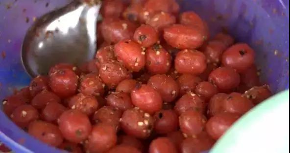 將草莓洗凈,去掉綠葉,用開水燙一下草莓,瀝干晾干之后。根據(jù)自己口味放入少許鹽,胡椒,辣椒粉,攪拌均勻,即可食用。咸咸甜甜吃出不一樣的滋味兒。