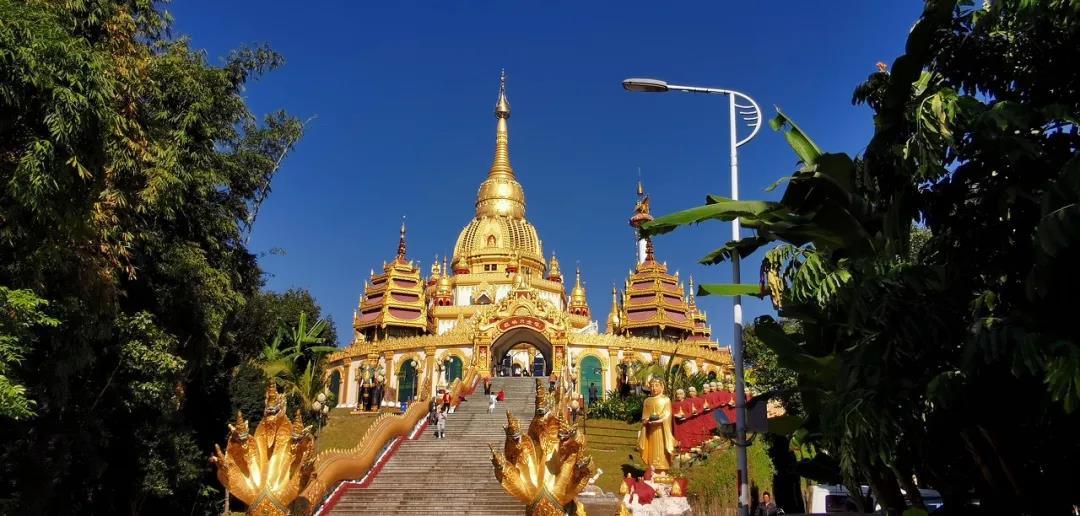 來到芒市一定要來勐煥大金塔。它有著耀眼的金色和巨大的建筑規(guī)模,醒目地佇立在芒市雷牙讓山的山頂。
