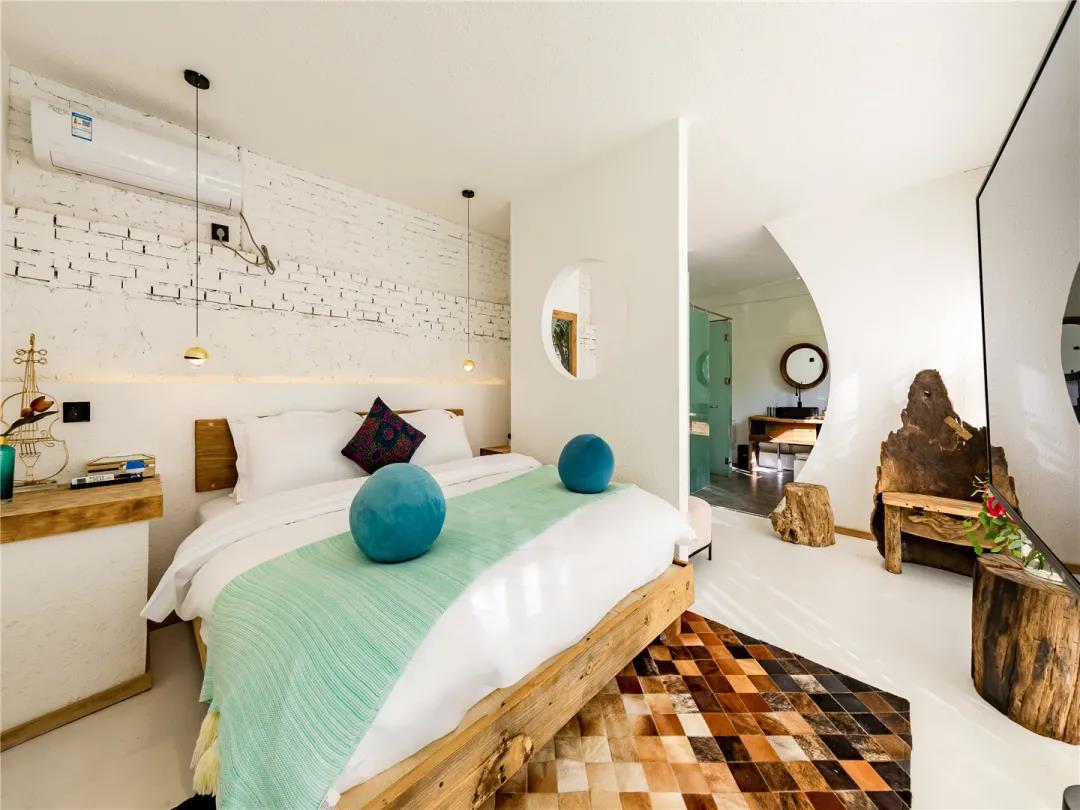 花園民宿房型分為白鳥(niǎo)、眠空 、天舞、藍(lán)山四種,每個(gè)臥室都配備超有藝術(shù)感的落地窗和大浴缸,隨手一拍都美美噠,房間內(nèi)做舊的桌子打造了一種年代感與時(shí)尚激烈碰撞~