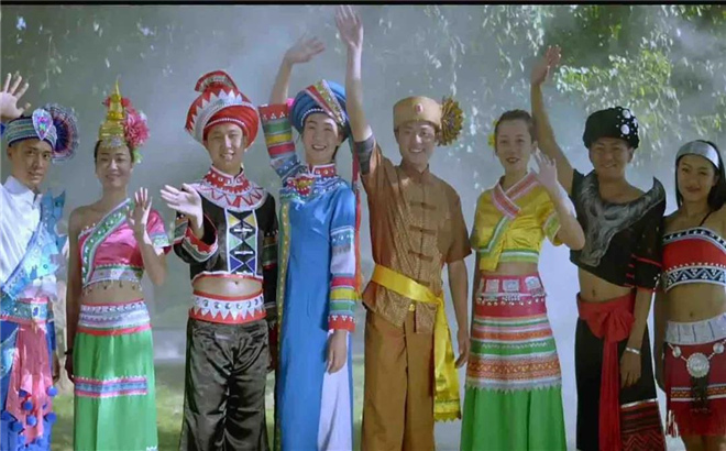 穿一件拉、佤、布、傣民族服裝,或一套漢服