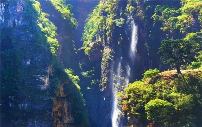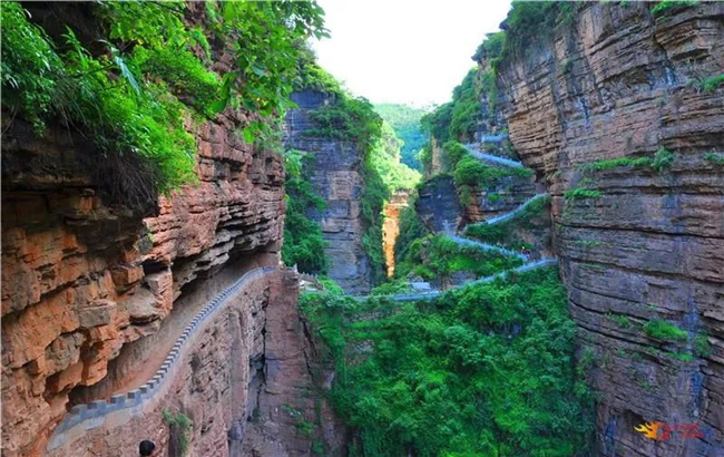 在大裂谷的峭壁上,修建有彎彎曲曲的棧道,狹窄的棧道里經(jīng)常能碰到趕騾子的老鄉(xiāng),讓路難度系數(shù)五顆星。為了確保游覽安全,景區(qū)在棧道周邊安裝了護(hù)欄,站在棧道上,可仰觀兩岸絕壁,俯視幽谷秘境,看瀑布垂簾,聽水流歌唱……
