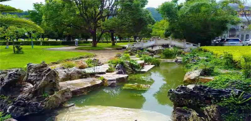 被雨沖涮過(guò)的游道顯得格外素凈,樹(shù)葉在陽(yáng)光的照射下閃著光,天池水面清澈無(wú)比,就像一面鏡子,映照著藍(lán)天、樹(shù)木和云朵。
