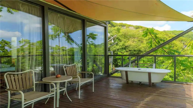 可以告別城市的喧囂與浮華,來一場貼近大自然的旅行。晨昏日落,放空思緒感受一下山林幽靜;茶余飯后,漫步小道呼吸一點新鮮空氣;窗邊沐浴,放松身心編織一個甜美夢境。