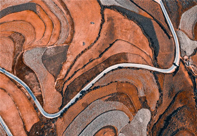 土壤里的鐵質(zhì)在千百年時間里慢慢沉淀,形成了獨特的紅色;加上當(dāng)?shù)厝嗽谶@片貧瘠的土地上努力耕作,反而將紅土地裝點成了色彩絢麗的美景之地。