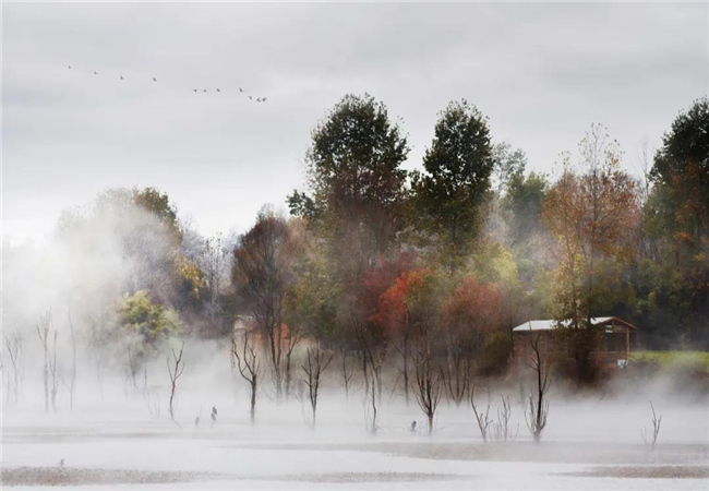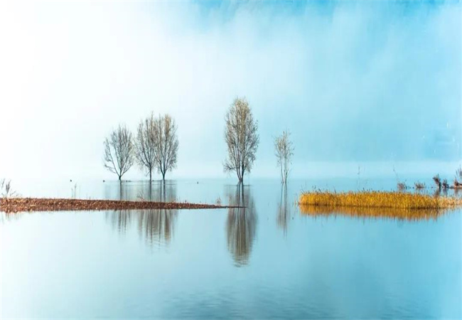 秋冬的念湖是最美的,芳草萋萋,霧藹悠悠。