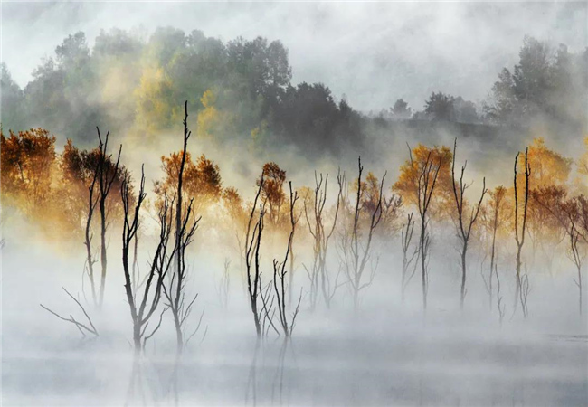 仙霧繚繞中露出一層層金黃,美得不像人間。