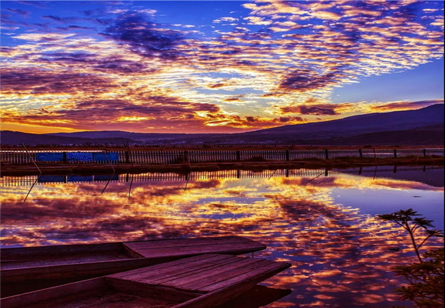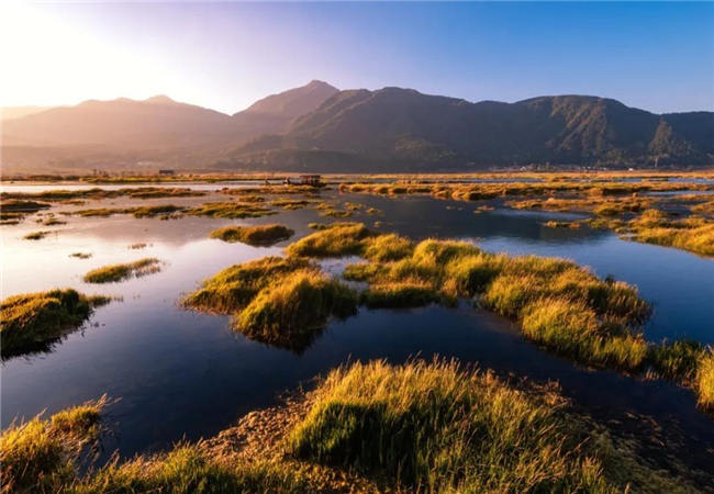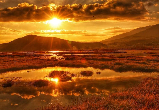 從初秋開始,北海就開始慢慢轉(zhuǎn)換著顏色,徐霞客在此寫道:海子大可千畝,中皆蕪草青青,下如草浮結(jié)而成者,亦有溪流貫其間不能起……