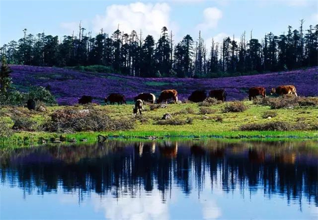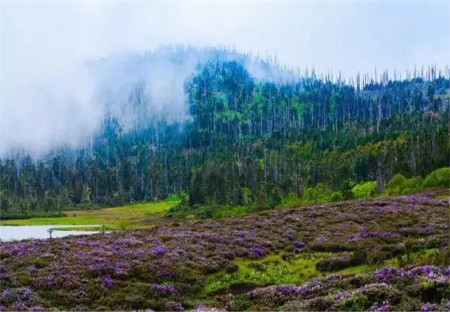 千湖山周圍被原始森林所覆蓋,多為高大筆直的冷杉、云杉。湖畔長(zhǎng)滿了杜鵑林,這里的杜鵑花花冠碩大,色澤鮮艷,盛開(kāi)之時(shí)煞是好看。