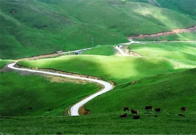 前往大海草山一路都是盤山公路,成群的牛羊漫步在山野之間,沿途風(fēng)光無(wú)限。