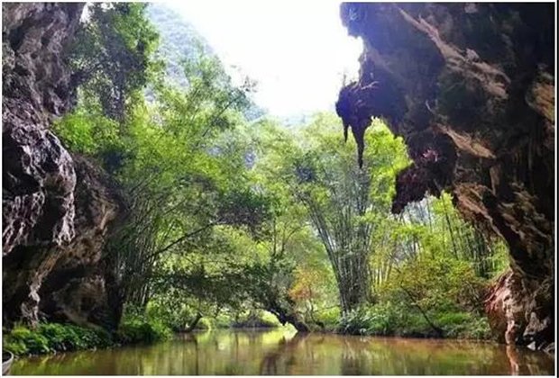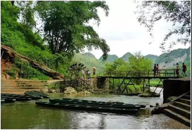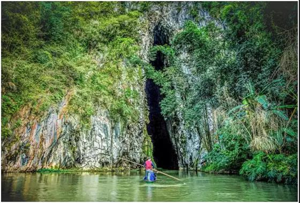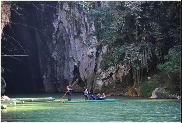 湯 那 洞,壩美村四面環(huán)山,不通公路,進(jìn)出靠水路,村民們要撐竹筏,搖豬槽船,摸著巖壁過河。這幽暗的水洞一前一后,被稱之為湯那洞,是天然的石灰熔巖水洞。