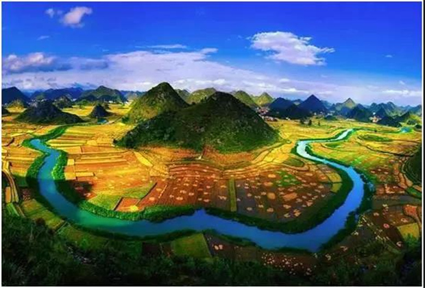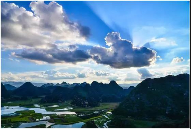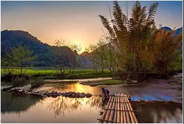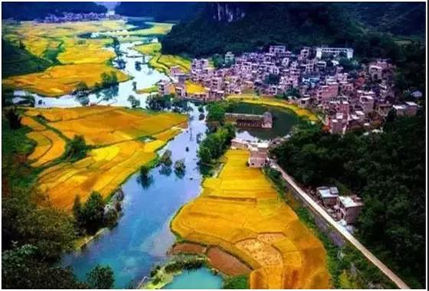 出了溶洞,世外桃源的景象映入眼簾,幾里見方的盆地平原,四周群山圍繞,與世隔絕馱娘江蜿蜒其中。