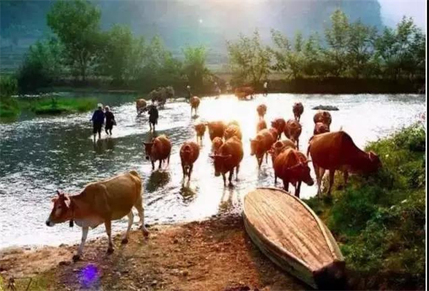 而這時(shí)奇跡出現(xiàn)了,河中央傳來甜美的歌聲,一位壯族姑娘搖著豬槽船來到了他們面前,渡他們過河。從此,馱娘江變成了一條清淺的小河。