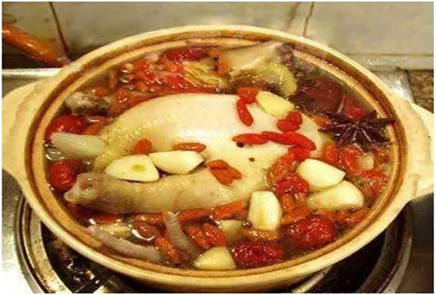 岜 夯 雞,岜夯就是用紅青菜或野菜制作的一種酸菜湯。將紅青菜工(或野菜)洗凈、晾干,放入米湯內(nèi)泡三至五日,其湯即為有酸味的紅色湯汁。這樣的酸菜湯配上雞肉片,鮮香無比。
