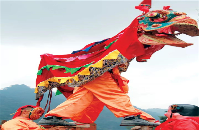每逢元宵佳節(jié)或集會(huì)慶典,當(dāng)?shù)囟家元{舞來助興,這個(gè)習(xí)俗至今已有一千多年的歷史。獅子在中華人民心目中為瑞獸,在舞獅活動(dòng)中寄托著民眾消災(zāi)除害、求吉納福的美好意愿。