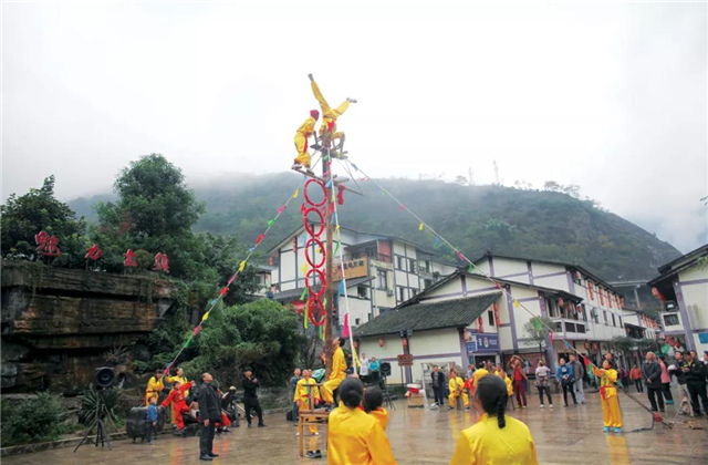 從昭通水富南下,山谷里綠意盎然,云霧繚繞中,隱約能看到數(shù)枝茶花盛開,驅(qū)逐了清晨的一絲寒意。往宜賓方向走,萬(wàn)畝茶花林深處,是興隆高竿獅子舞的故鄉(xiāng)。想不想跟隨云南會(huì)展策劃小編去看看高桿獅子舞呢?