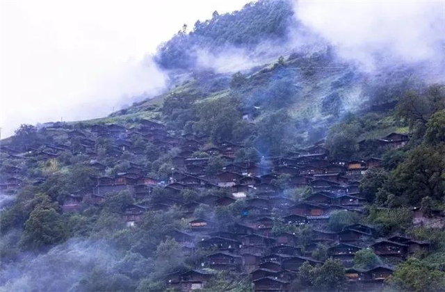若是從遠(yuǎn)處縱觀整個(gè)村落,枯樹、老屋、云霧,就像一幅水墨畫,讓每一個(gè)人沉醉。