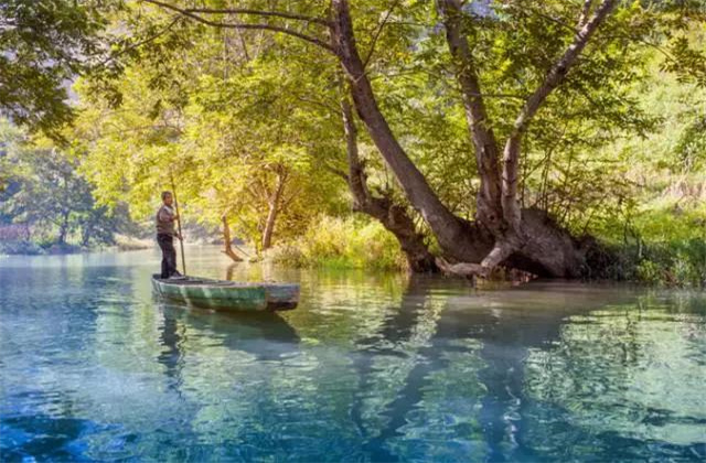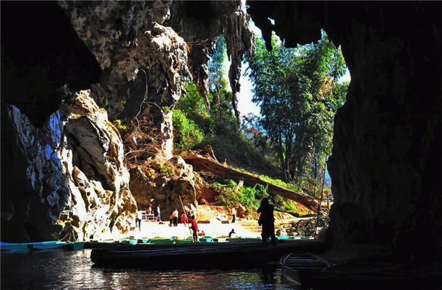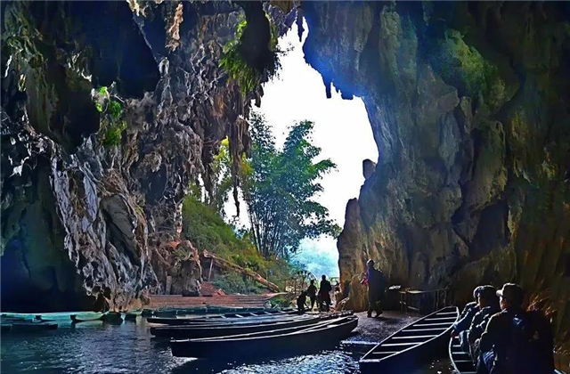 坐上小船進(jìn)入洞中,洞外嘈雜的人聲、水流聲會(huì)完全消失,只有小船輕輕劃過(guò)水面的音律和鐘乳石水滴滴落水面的聲息。