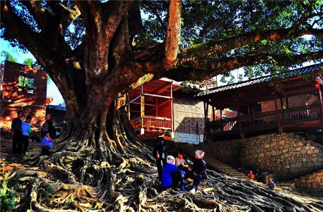 村落中有幾棵大榕樹(shù),沒(méi)有人知道它經(jīng)歷了多少年月風(fēng)霜的洗禮,就這樣開(kāi)枝散葉,盤(pán)根錯(cuò)節(jié),傾聽(tīng)了無(wú)數(shù)壩美人的家長(zhǎng)里短,歷史傳說(shuō),見(jiàn)證著這里的一朝一夕。
