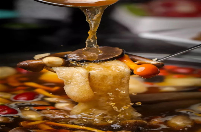 野生菌火鍋采用老菌湯作為湯底,將7種以上野生菌干片,加上高鈣骨料混合經(jīng)7小時熬制而成。