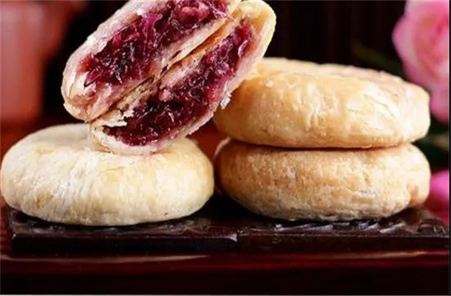 鮮花餅是一款以云南特有的食用玫瑰花入料的酥餅,是具有云南特色的云南經(jīng)典點心代表。