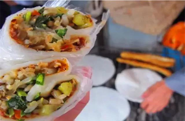 燒餌塊是個“有料貨”,肉醬、洋芋絲、豆芽還有腌菜一起裹進餌塊,料超級足。
