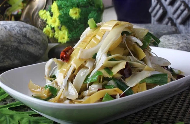 棕包花最常見的做法是切片在清水中浸泡,然后用開水略抄一下,之后炒肉,鮮肉及臘肉均可,成菜色澤艷麗,鮮中帶苦,苦中回甘,回味無窮。初食口感略苦,食用數(shù)次后倍感愛不釋口,百嘗不厭,清苦回甘令人“久處不厭”。三七渾身是寶,三七花又稱田七花,是三七全株中三七皂苷含量最高的部分,性味甘涼,具有清熱、平肝、降壓之功效,適用于頭昏、目眩、耳鳴、高血壓和急性咽喉炎等癥,可泡茶、炒肉、煲湯等,在安眠方面也有一定的功效,是藥膳的首選藥材。