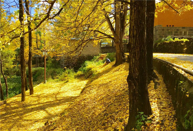 萬株銀杏在秋色中漸漸染成了金黃色,在清澈陽光的照耀金黃的樹林,構(gòu)成了迷人而夢幻的光影。不是仙境卻勝似仙境。