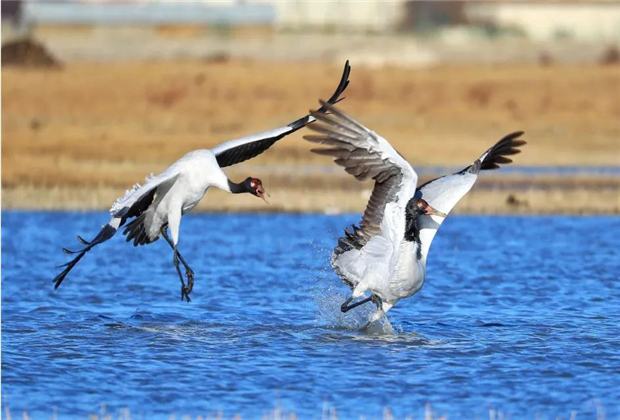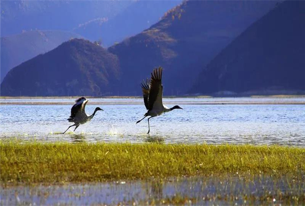 納帕海,藏語叫做“納帕措”,意為“森林背后的湖”。這是一處典型的季節(jié)性湖泊,也是國家一級保護野生動物黑頸鶴、黃鴨、斑頭雁等珍奇異獸越冬棲息地,場面非常震撼。