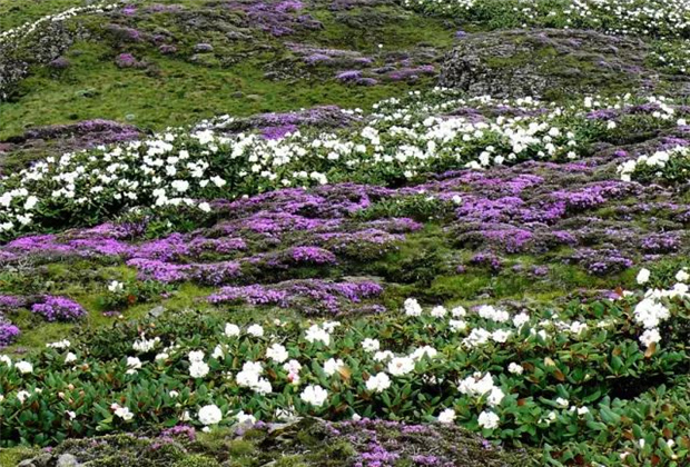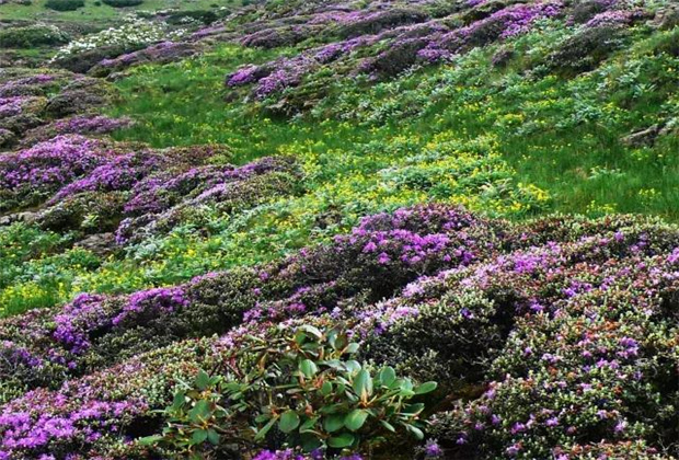 轎子雪山的杜鵑花品類繁多,五光十色,多姿多彩:殷紅似火、金光燦燦、晶紫如寶,真是千變?nèi)f化,無奇不有。