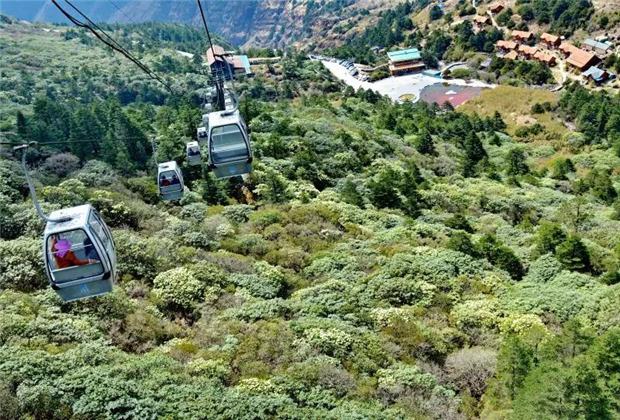 想要欣賞下坪子的黃杜鵑花海最好的方式是乘纜車,隨著纜車的緩緩上升,黃杜鵑花海盡收眼底。