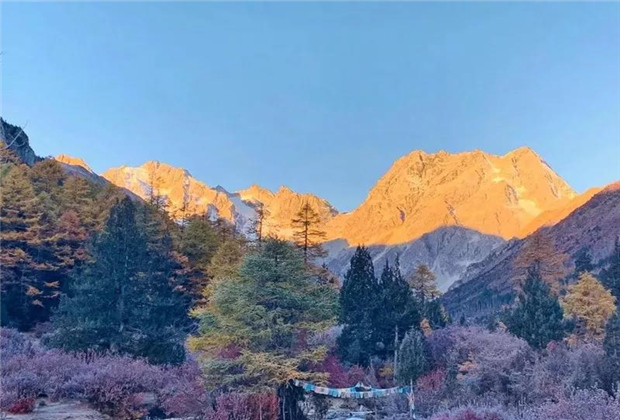 白馬雪山自然保護(hù)區(qū)屬于寒溫性森林生態(tài)系統(tǒng)類型,有中國低緯度高海拔保存比較完整而原始的高山針葉林區(qū)。深秋,這些高山針葉林都染成了金黃色,在高原陽光和雪山的襯托下,更加色彩繽紛、秋色絢麗。原始森林層林盡染,將白馬雪山的色彩裝飾成如同油畫般濃郁。