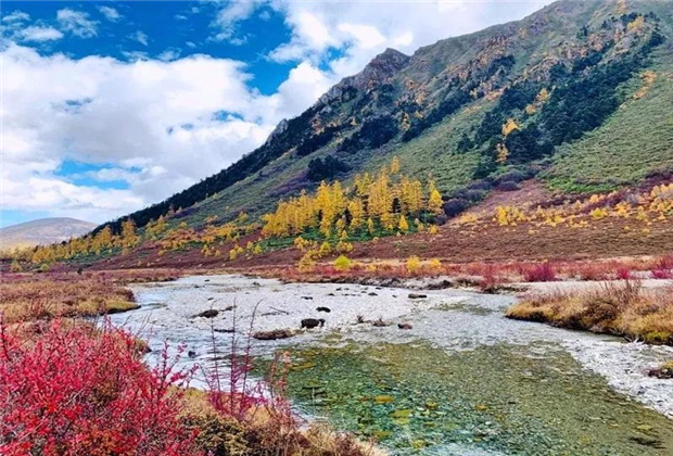 深秋時節(jié),走進(jìn)迪慶州白馬雪山自然保護(hù)區(qū)曲宗貢,就像走進(jìn)了一個五彩斑斕的童話世界,靜謐中深藏著圣潔。穿行在曲宗貢,你不僅會被這里深秋的純凈所心動,更會被這里秋色的熱烈和大氣所震撼。