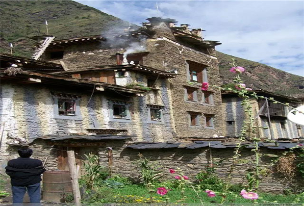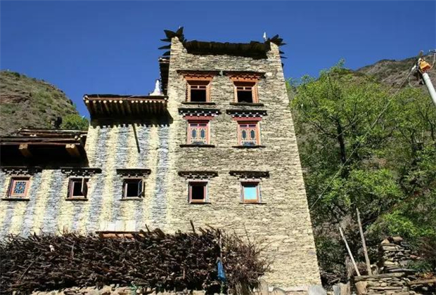 扎壩民居是一種碉與房的組合,一般4至5層,墻體完全用片石砌成,房高約20米,這種房在當?shù)匾卜Q之為“碉樓”。