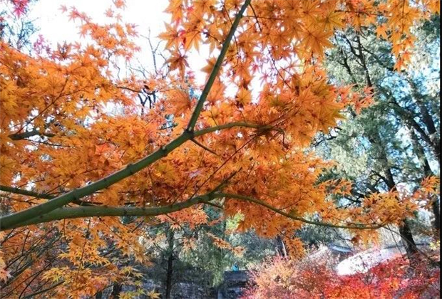除了有紅楓還有黃色的銀杏,更有門庭若市的人群,就是一個(gè)歡樂的伊甸園,每年來這里賞楓葉的各地游客絡(luò)繹不絕。