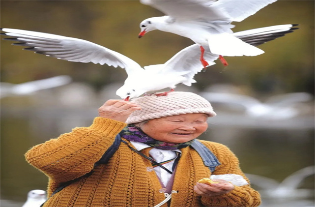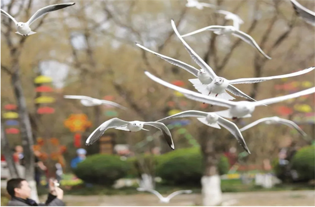 嗷嗚,嗷嗚”的叫聲對于它們來說也是一種安慰。 紅嘴鷗與大多數(shù)鳥類一樣,對陌生聲音很敏感。只要它感覺不安全,就會立即飛走。趙雪冰說:“鷗群如果受到巨大的驚嚇,如大聲吼叫、哄趕、燃放炮竹,就會紛紛起飛逃離,在水面上空或屋頂周圍飛舞。但昆明的紅嘴鷗已經習慣了城區(qū)的噪音、來來往往的車流、人聲鼎沸的人群?!?這樣看來,紅嘴鷗是通人性的,確切地說, 它們知道這里的人們對它是友好的。