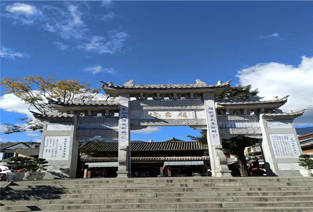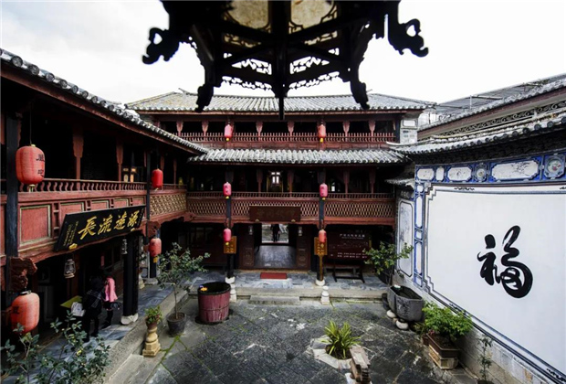 其中,嚴家大院就是典型的白族大戶人家建筑,也是喜洲古鎮(zhèn)的一大景點之一。它的雕梁畫棟、斗拱重疊、翹角飛檐、門樓、照壁、山墻的彩畫裝飾藝術絢麗多姿,充分體現(xiàn)了白族人民的建筑才華和藝術創(chuàng)造力!