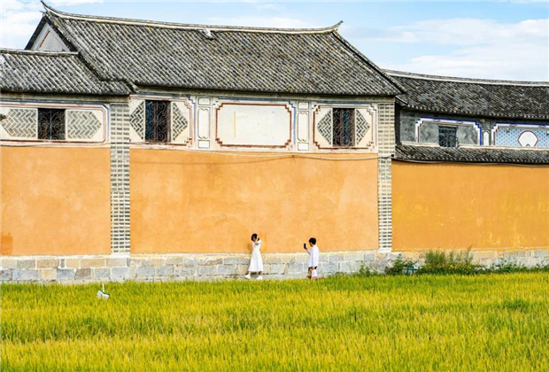 喜林苑位于大理喜洲鎮(zhèn)的東側,周圍是一整片田地。喜林苑灰瓦黃墻的質樸,吸引了許多游客前來拍照打卡。