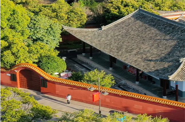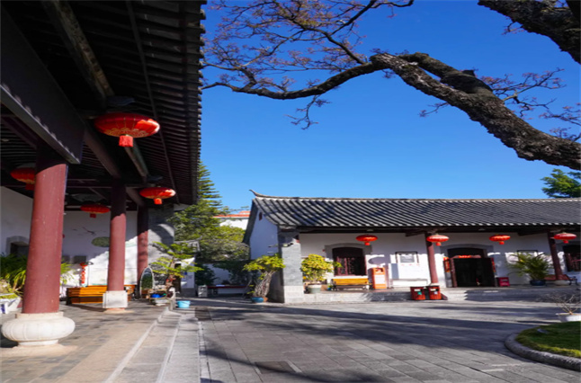 蒙自海關稅務司署一棟單檐歇山頂?shù)闹袊钐檬浇ㄖ?/span>在紅墻里訴說著往日時光