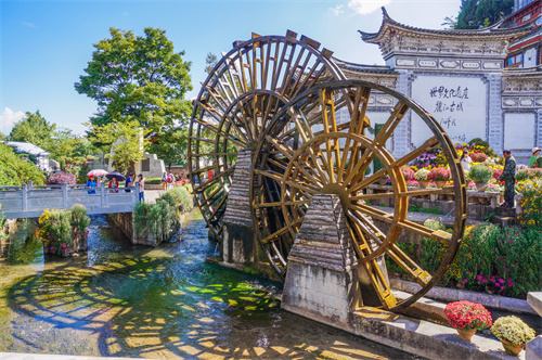 玉龍雪山的水嘀嗒、嘀嗒從山尖融化,滾落山澗河湖……古城、束河的水嘩啦、嘩啦繞著小橋,流進千萬家……金沙江的水轟隆轟隆三江并進,翻滾奔騰南下。