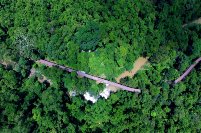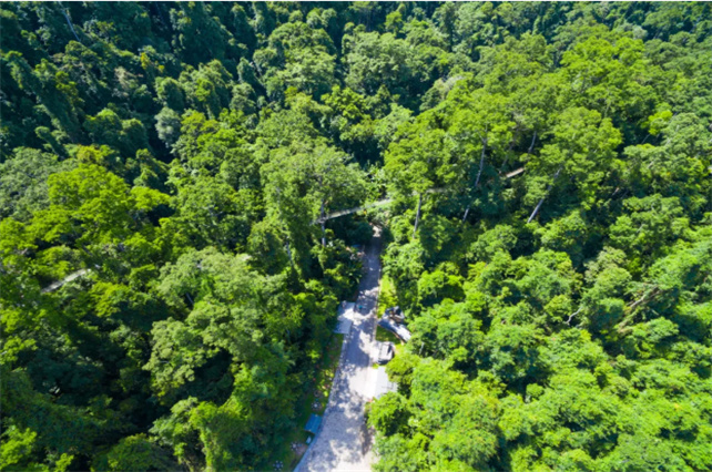 森林覆蓋率高達98%的原始森林公園,青綠是這里的主色調。高空俯瞰,一片綠色的海洋映入眼簾,綠衣隨著微風拂動,宛若一幅慢慢舒展的畫卷。漫步其間,蜿蜒的雨林小道默默記載著時間的斑駁,近距離接觸動植物,方能體驗到大自然的魅力。園內的孔雀演繹,將野生動物文化與生活完美融合。原始森林公園“以綠色擁抱生活”的理念是對“只此青綠”的最好回應。