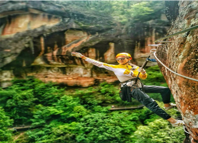 以飛拉達(dá)鐵道攀登為主要游覽項(xiàng)目,給熱愛運(yùn)動、向往自然的旅人,帶來近距離感受丹霞地貌奇美壯麗的刺激體驗(yàn)。
