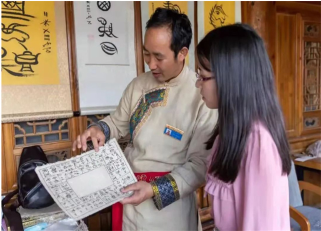 去東巴象形文字體驗(yàn)館,學(xué)著一筆一劃寫下自己的名字。