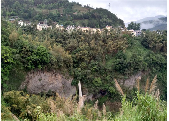 由屏邊縣城出發(fā),沿牧羊河而下,向西北行至7千米處的滴水層,站在326國道上便可見一條懸掛在幾十丈高的絕壁峭巖上的瀑布,這就是滴水層瀑布。
