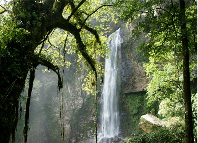 當(dāng)流動的河水突然垂直跌落,水鳴山澗,瀑布飛懸,帶給人無與倫比的震撼。作為山林間最具動態(tài)的美景,瀑布融形、色、聲之美為一體,具有獨(dú)特的表現(xiàn)力。穿越山川,走過叢林,紅河州的山間,一條條瀑布別具特色,或?qū)訉盈B疊,或雄渾壯觀,為紅河的山水增添了一抹動態(tài)之美。