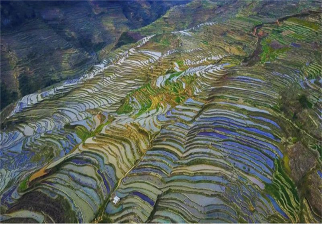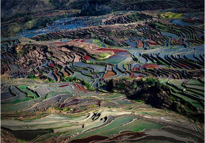 一道道田埂像一座座獨(dú)木橋,只有一雙腳并排的寬度,因此只能在同個(gè)方向獨(dú)行前進(jìn),或者選擇原路返回,沒法兩個(gè)人同時(shí)前進(jìn)。沒走過田埂的人,很容易走著走著就掉到田里去。而往往就有那么一些人,喜歡挑戰(zhàn),即便腳下再不穩(wěn),也要搖搖晃晃走完整個(gè)田埂。走田埂確實(shí)是近距離接觸梯田的不二選擇,在春天這個(gè)浪漫的季節(jié)里,怎能錯(cuò)過梯田美景呢?