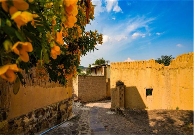 村莊的土掌房、蘑菇房等各具特色的房屋建筑沐浴在暖陽下,和清新春色構(gòu)成一幅靚麗的春景圖。它們靜靜等著遠(yuǎn)方的客人走入村莊,留下串串腳印。