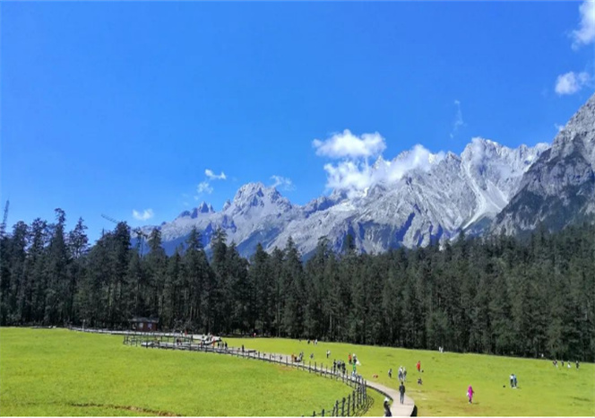 蜿蜒崎嶇的棧道,是玉龍雪山最愜意的存在。 行走在云杉坪或牦牛坪的棧道上,山色蒼翠,林木蔥郁,欣賞著旖旎風(fēng)光,望向高昂的玉龍雪山峰體,跟偶遇的行人閑談幾分鐘,何等的愜意。